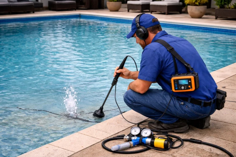 Localização precisa de vazamentos em piscinas de fibra, vinil, alvenaria e pré-fabricadas usando tecnologia não destrutiva.